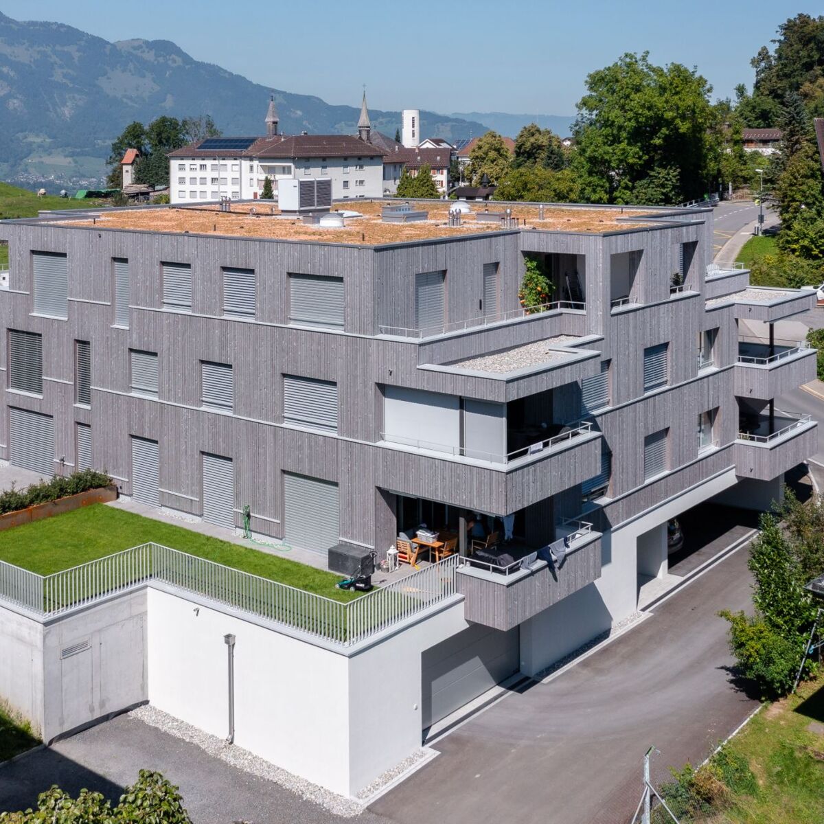 Die leichte Architektur ist hell und schnörkellos. Das Raumkonzept vereint moderne und ökologische Bauweise mit einem hervorragenden Preis-Leistungsverhältnis. Grosse Balkone mit einem dazugehörigen Aussenabstellraum werten alle Wohneinheiten entsprechend auf. Der grosse Gebäudeabstand von 20 Metern zum westlich gelegenen Nachbargebäude sorgt für einen grosszügigen Aussenraum und dessen optimale Besonnung.